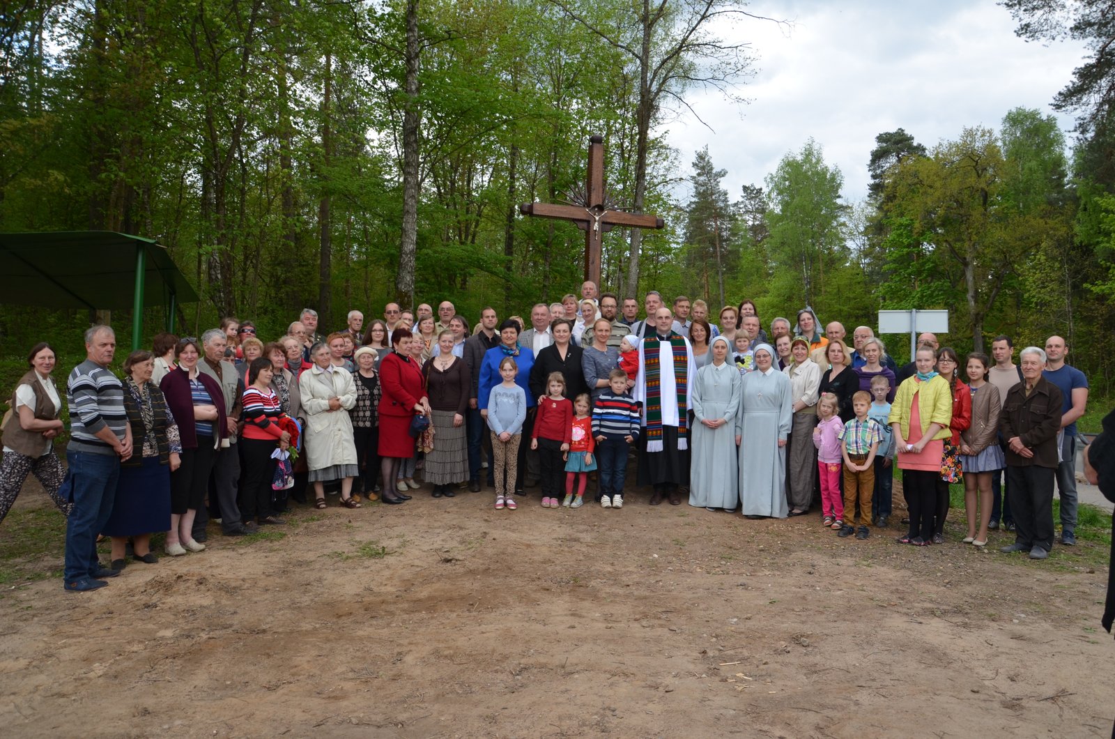 Na, o – svarbiausia žmonės, kurių rankomis buvo pagamintas ir pastatytas kryžius. Ačiū tariame autoriui – meistrui, medžio drožėjui – Nikolajui Ščevinskiui, iniciatoriams – statytojams, tvarkytojams – Danutai ir Jonui Radzevičiams, Vandai ir Henrikui Leščinskiams, Galinai ir Vasilijui Apiševams, Viktorui Ščitui, Nadiai Jodkienei ir kitiems.