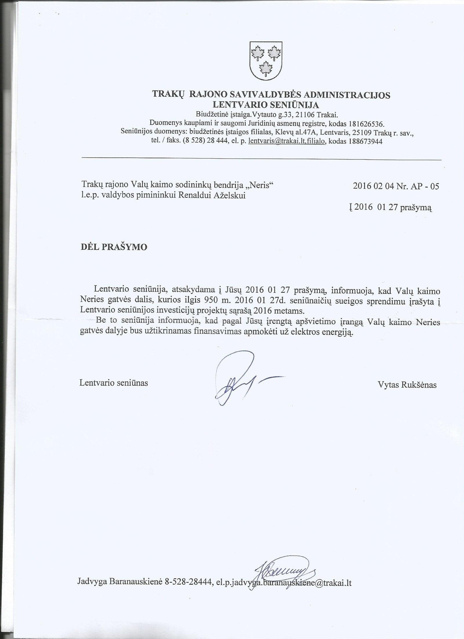 Ačiū Lentvario seniūnui Vytui Rukšėnui, Trakų rajono merei Editai Rudelienei, Valų km bendruomenei “Neris”, s/b valdybai ir Natalijai Čirikienei.